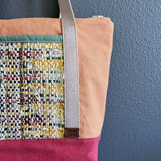 Classic Tote Bag w/Handwoven Pocket Detail - Medium, #002