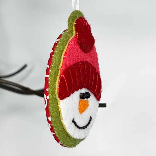 Puffy Snowman | Hand-stitched Wool Felt Folk Ornament
