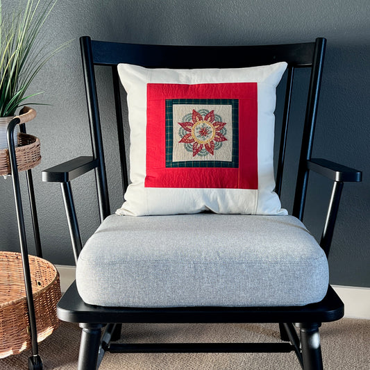 Hand-embroidered 18" Pillow | Holiday Mandala